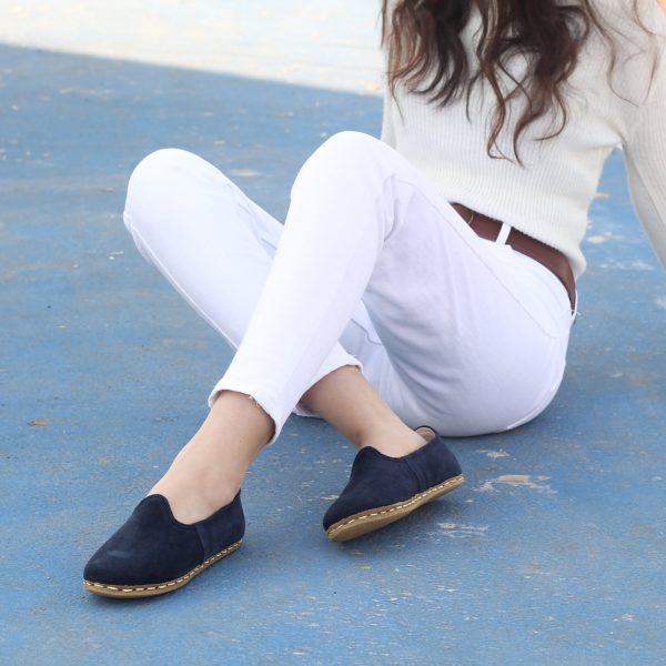 El Yapımı Barefoot Yalınayak Kadın Deri Boyka Terlik, Lacivert
