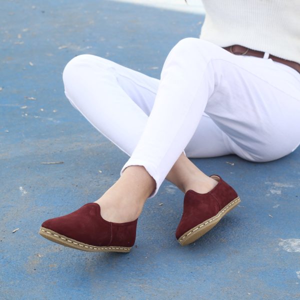 Kadın Ayakkabı Düz Yemeni Bordo Nubuk