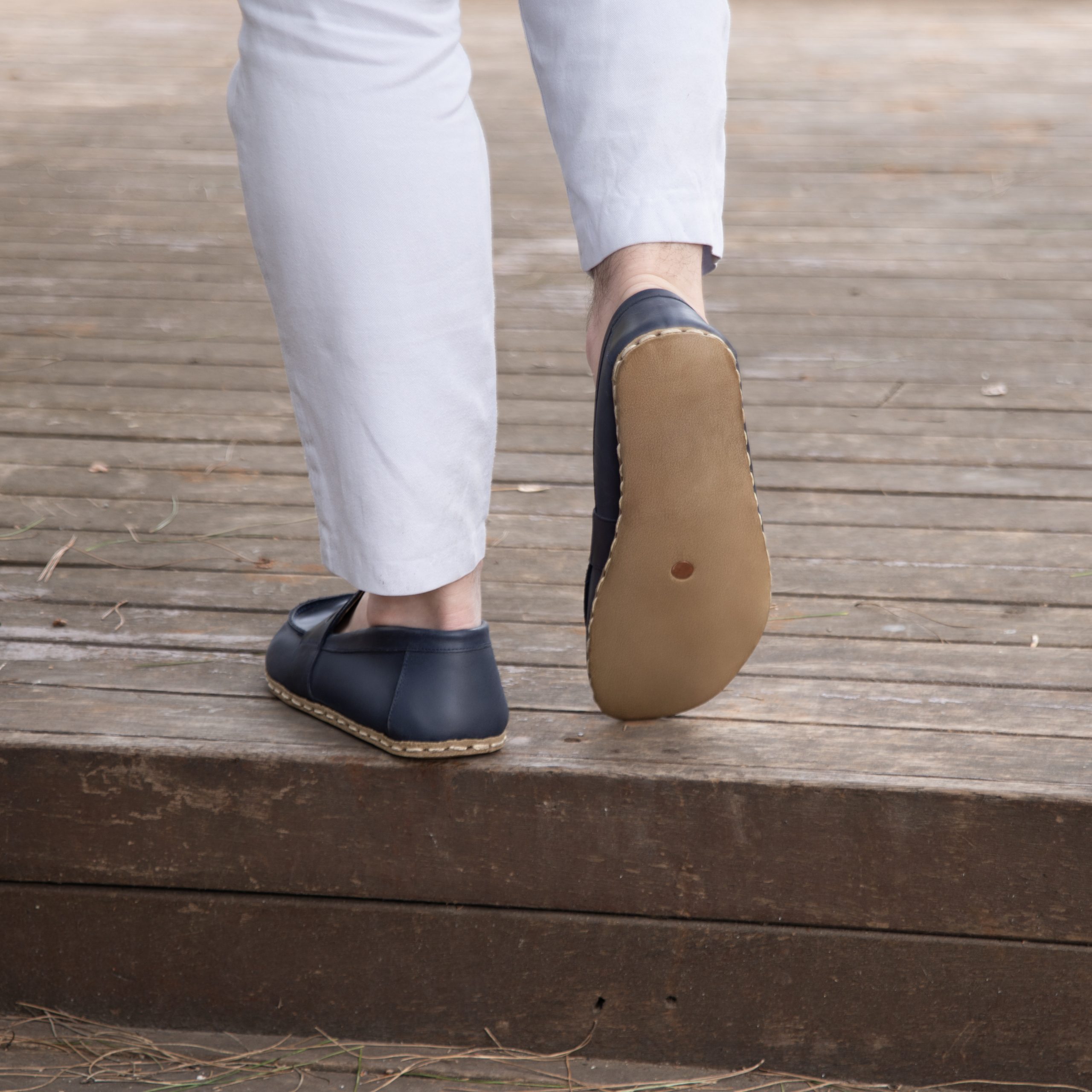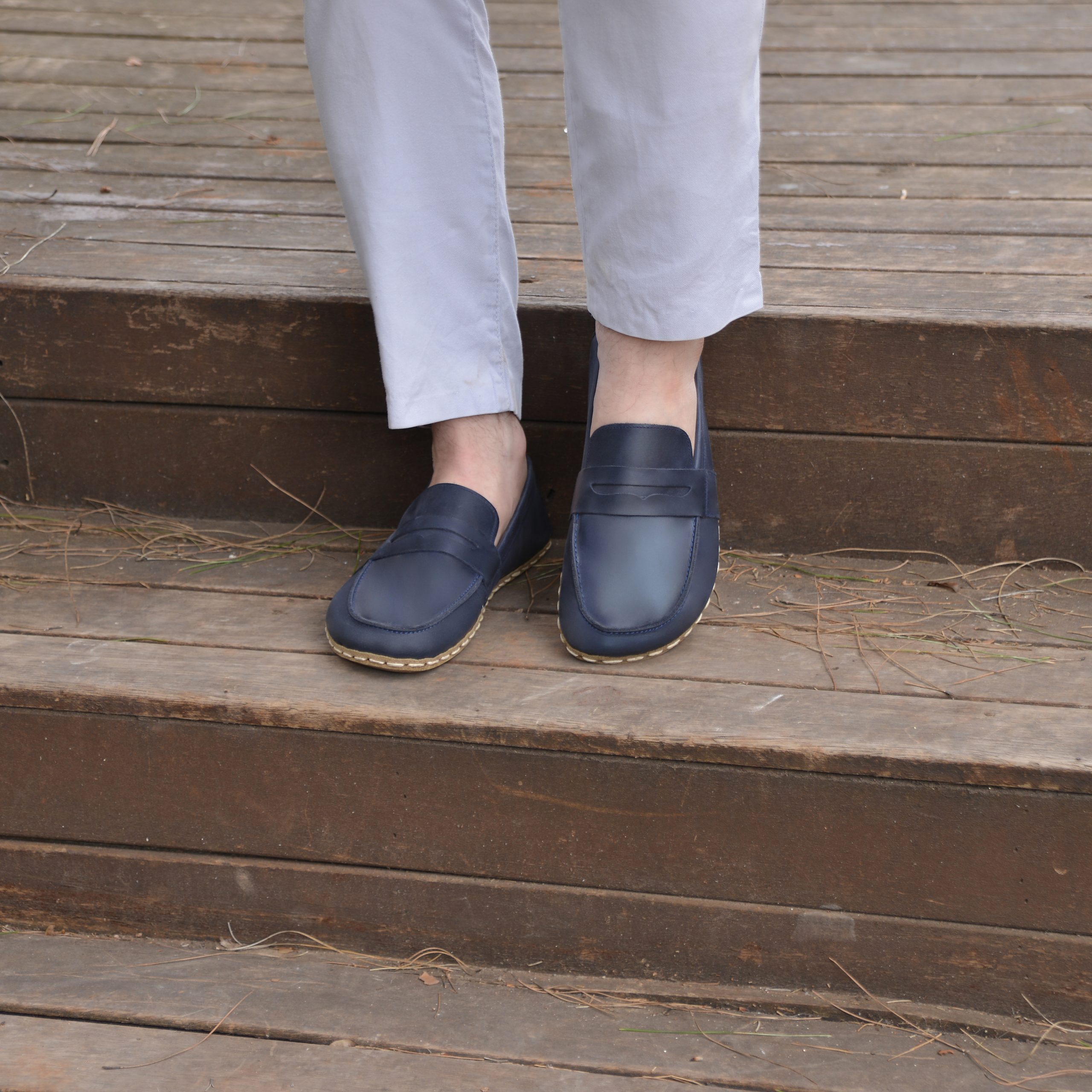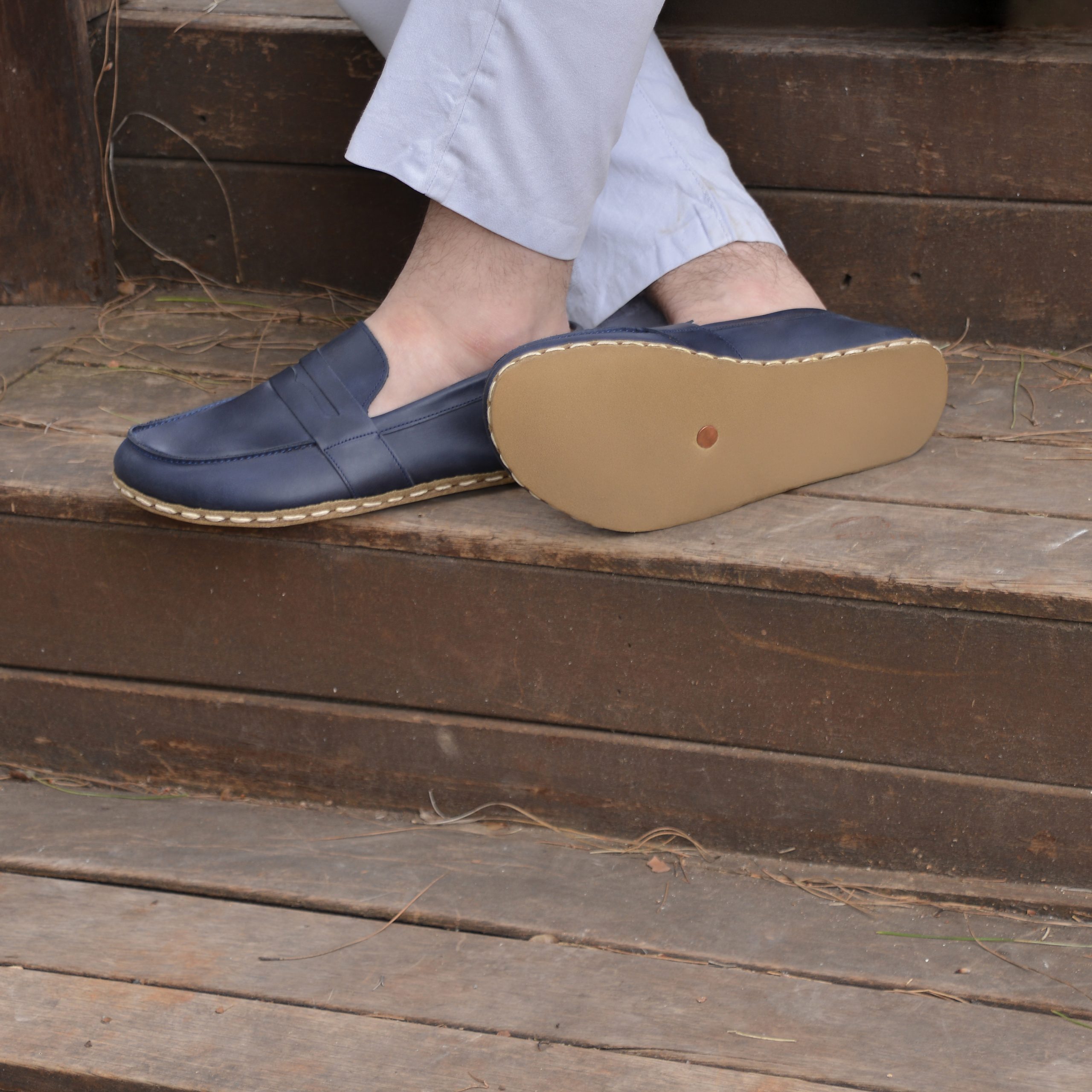 El Yapımı Barefoot Yalınayak Erkek Deri Atkılı Model, Larcivert