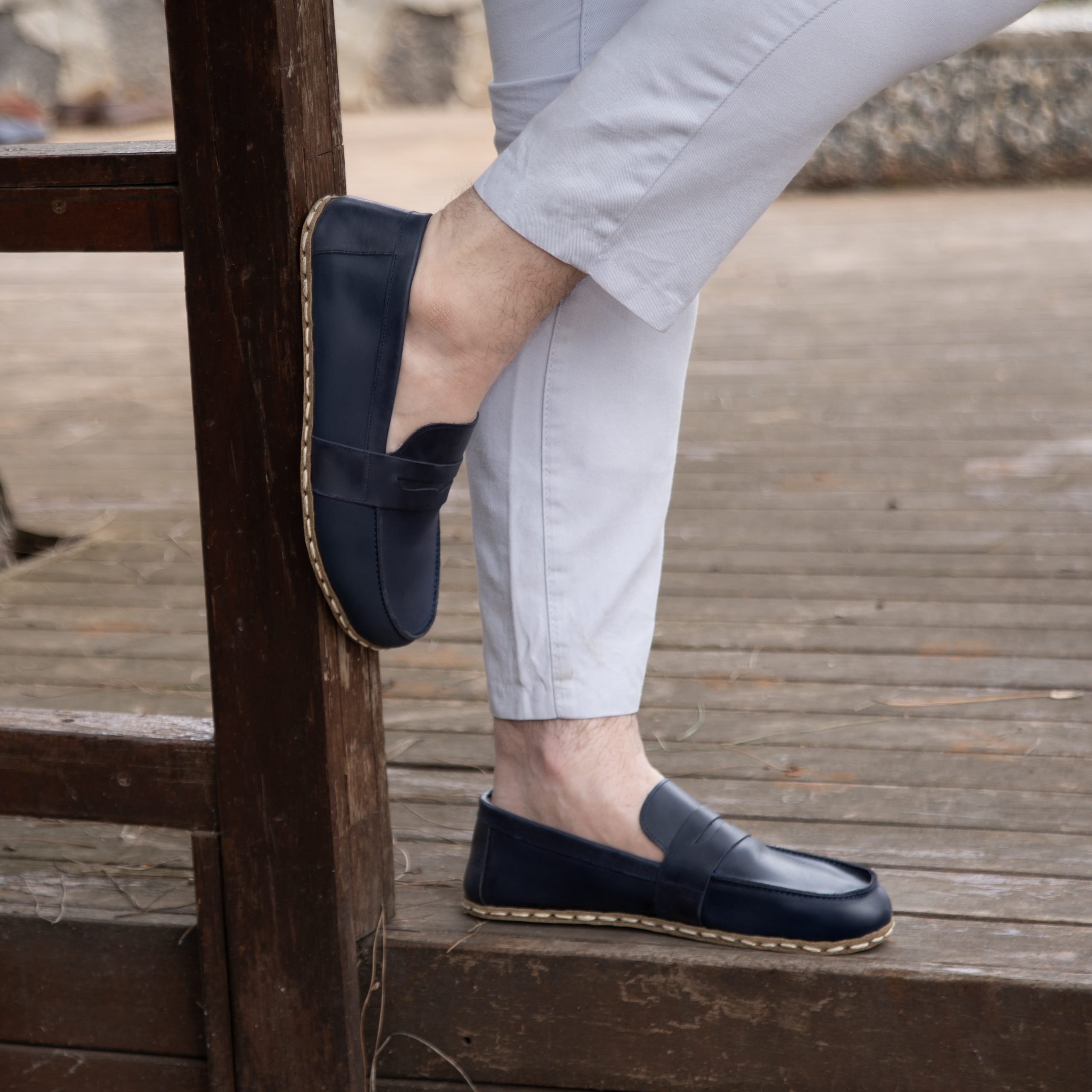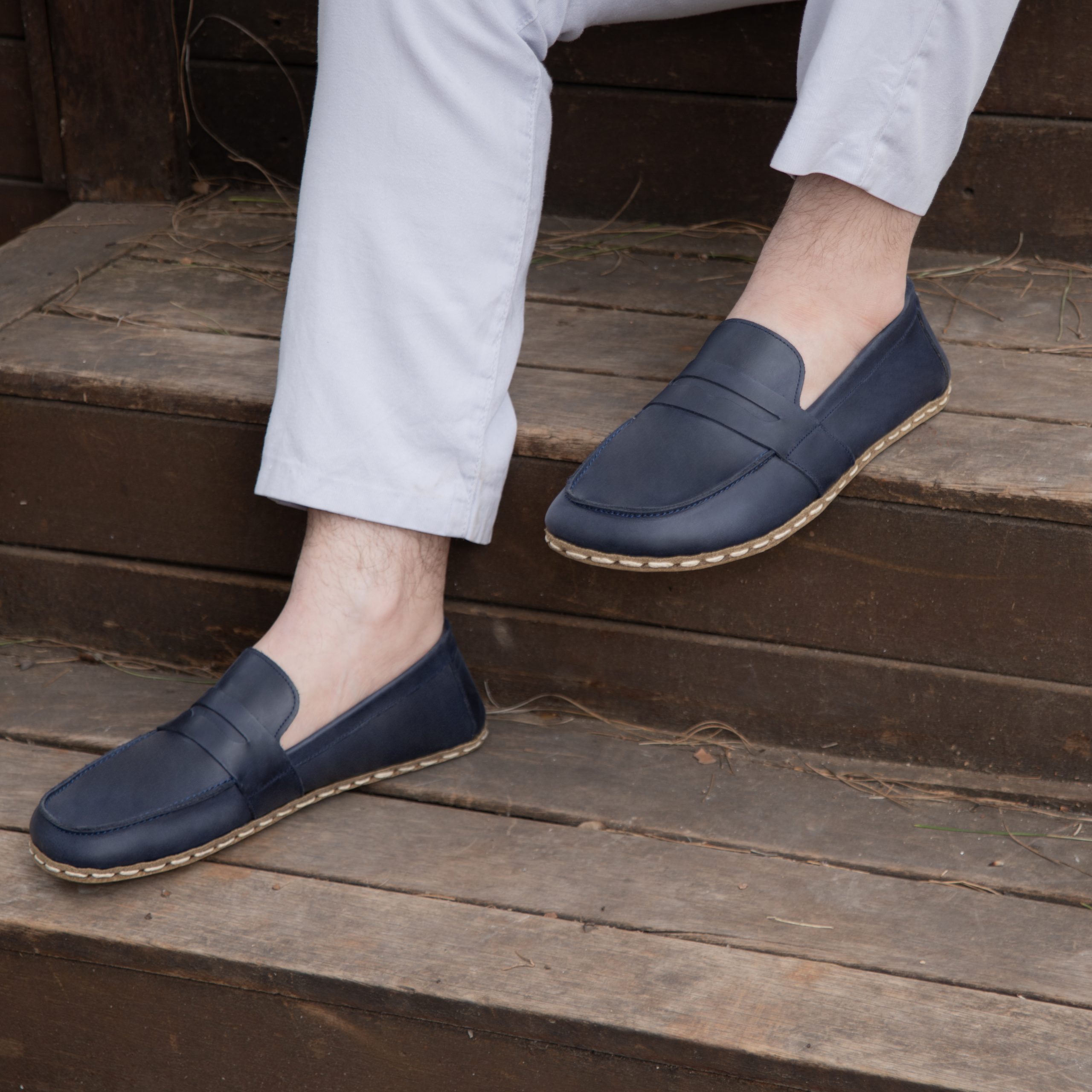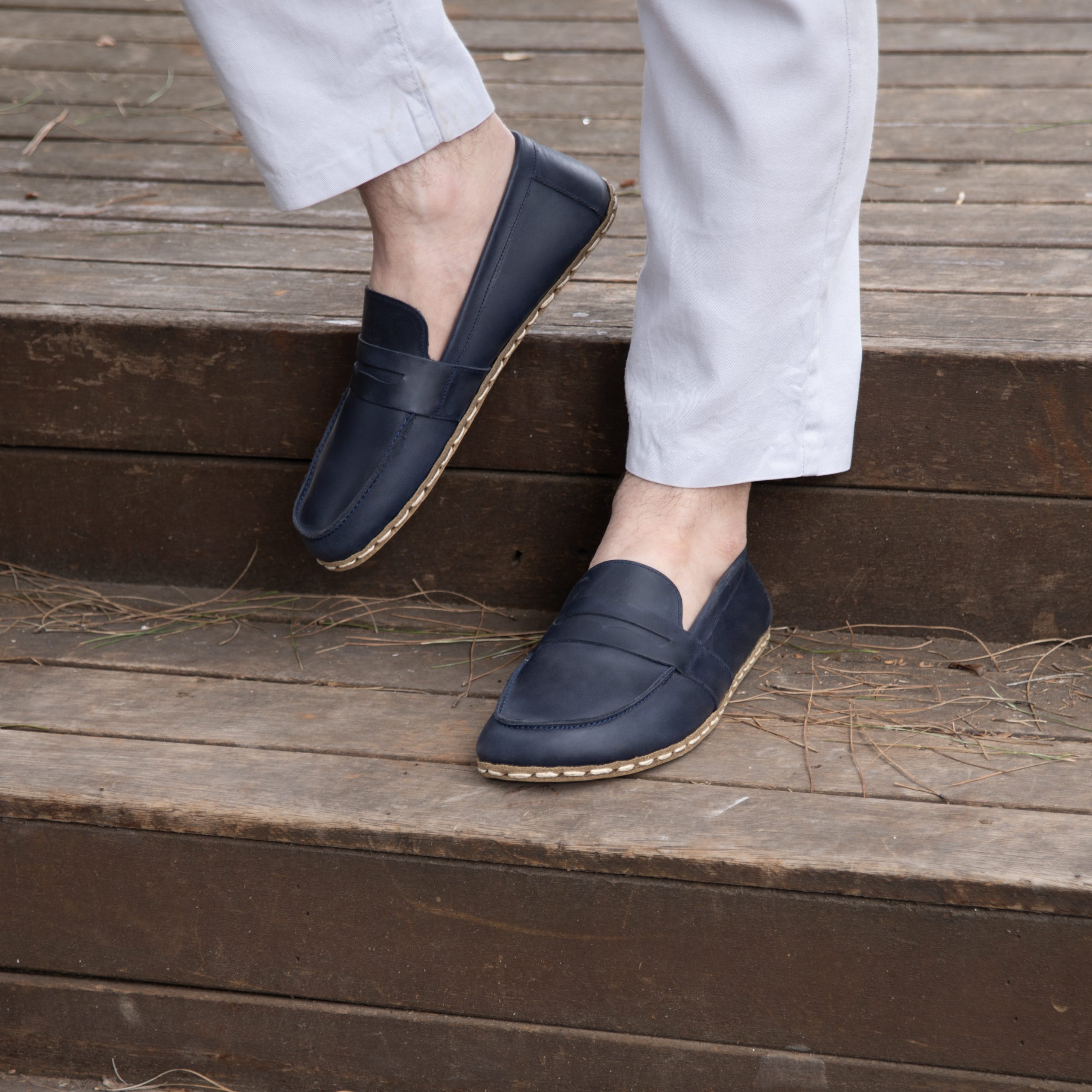 El Yapımı Barefoot Yalınayak Erkek Deri Atkılı Model, Larcivert