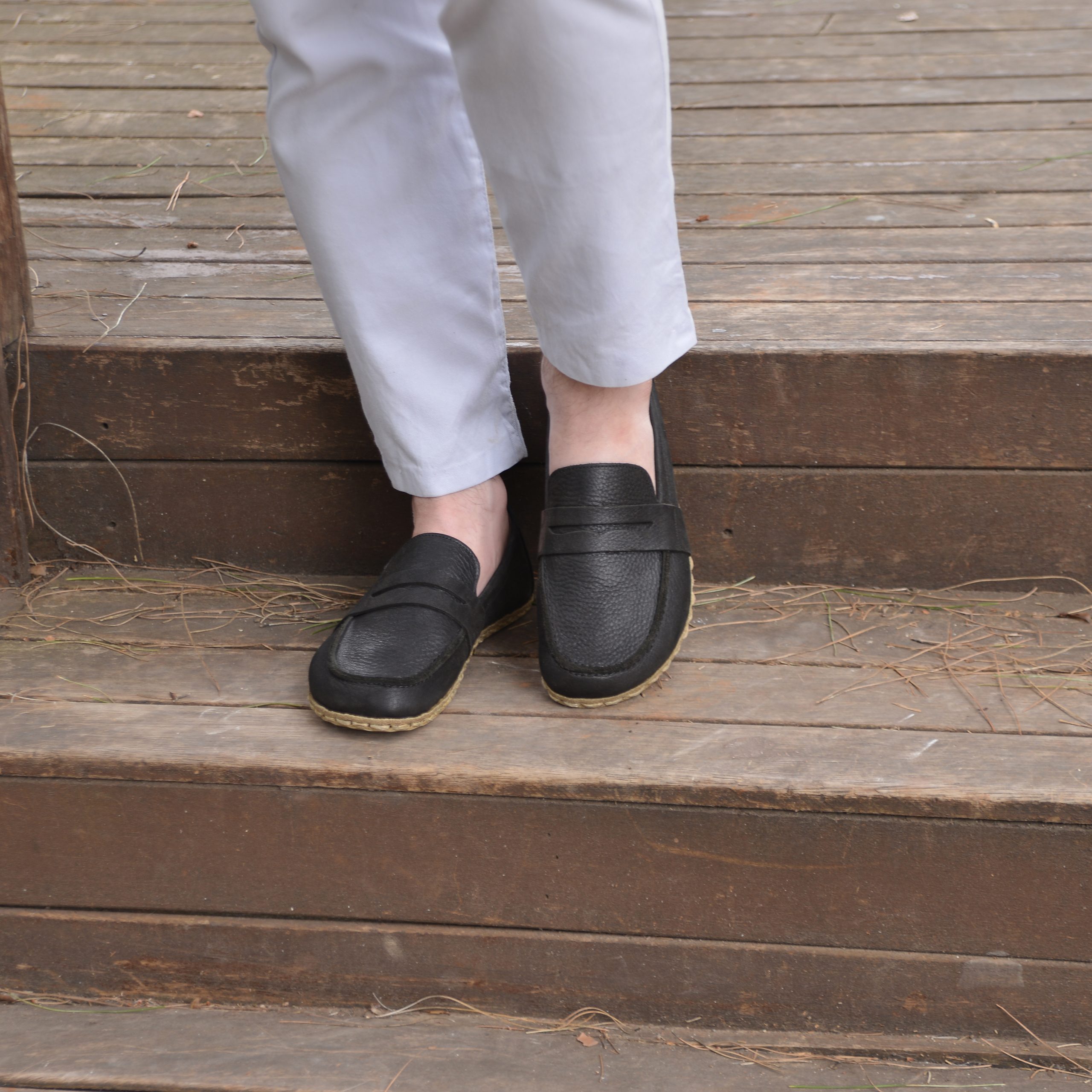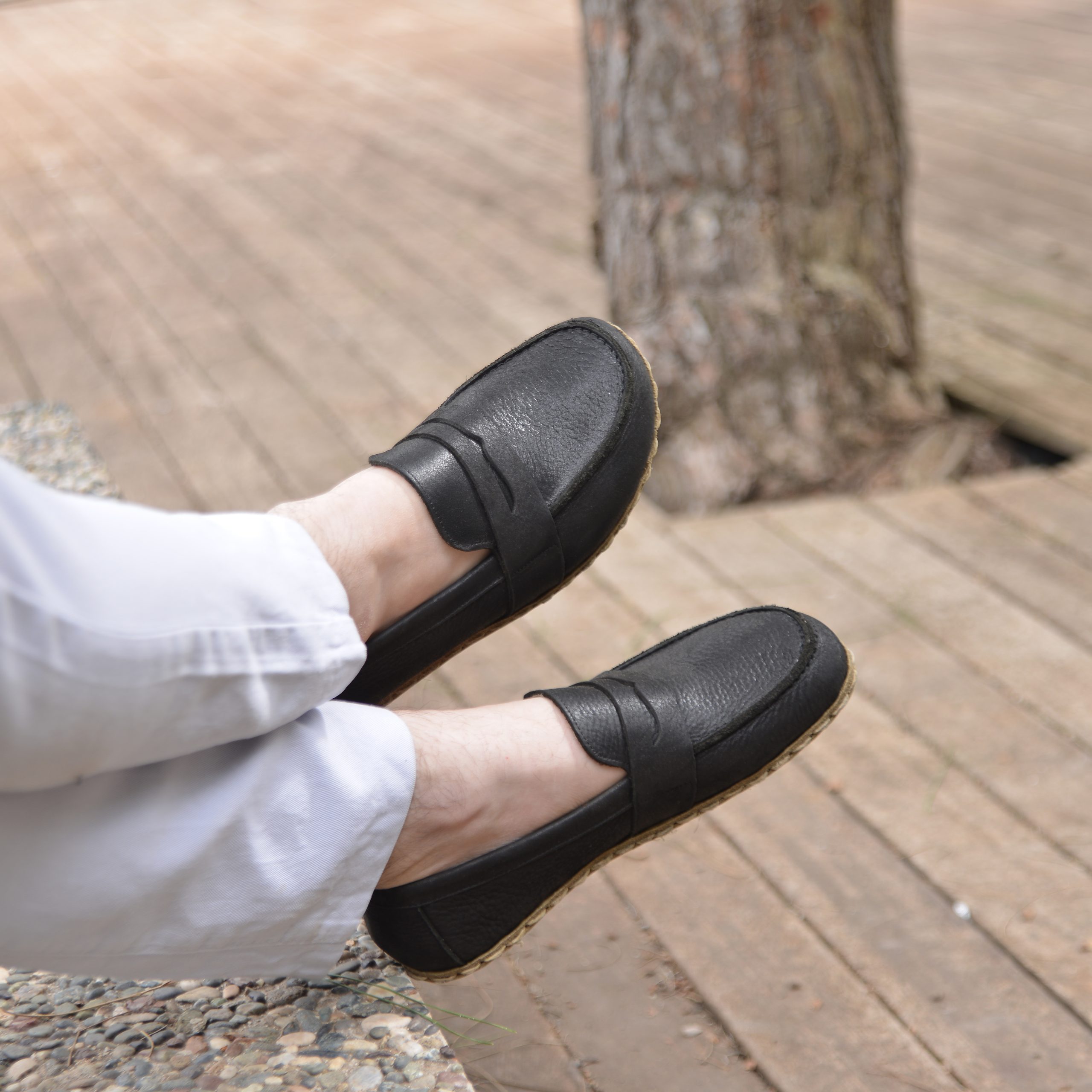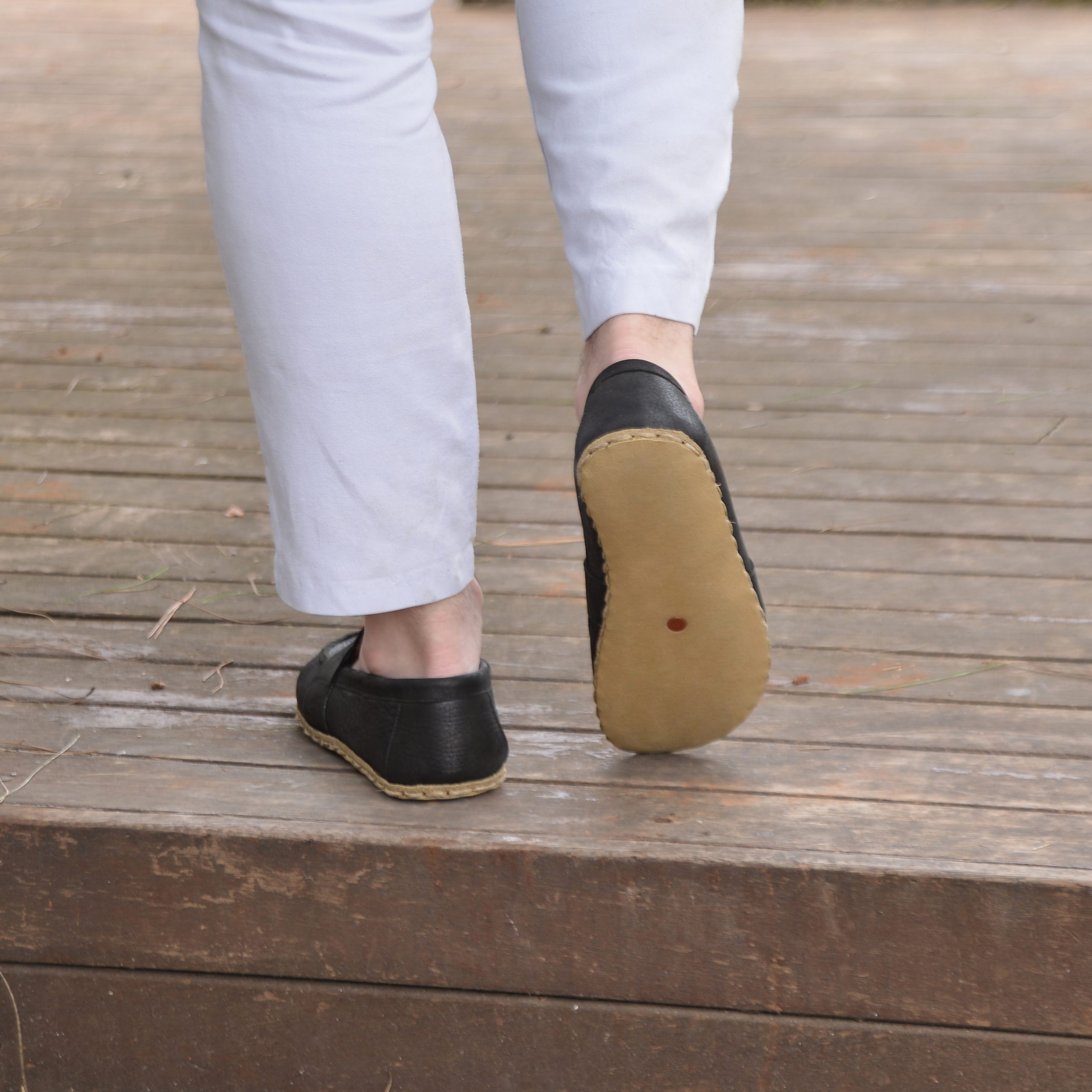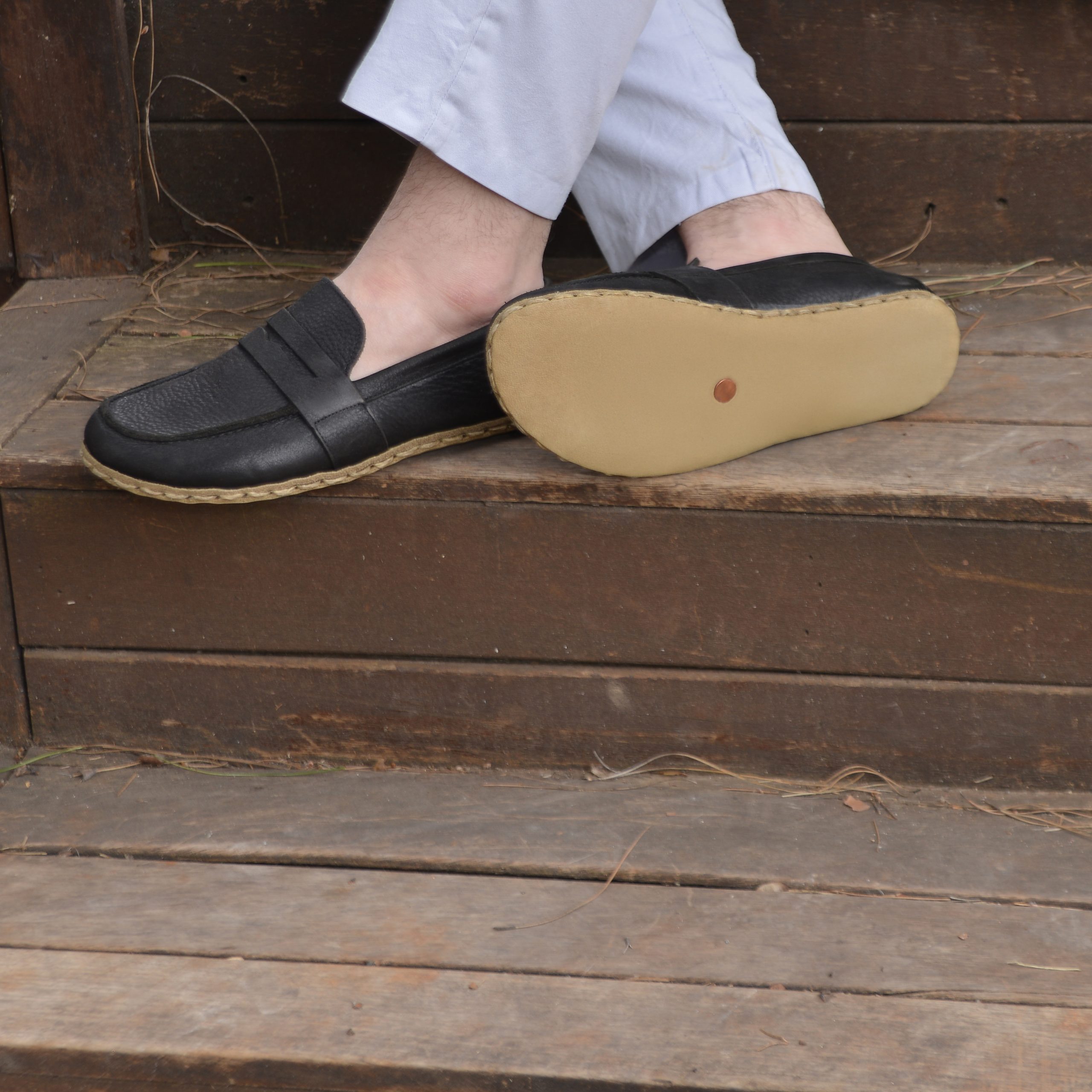 El Yapımı Barefoot Yalınayak Erkek Deri Atkılı Model, Siyah